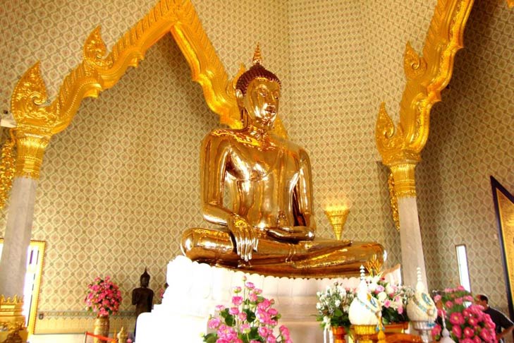- Golden Buddha Temple Wat Traimit - One of the most sacred temples in Thailand with Golden Buddha Buhhdha statue located at the main hall - the largest Golden Buddha statue in the world: 3 meters high and 5.5 heavier ton. The statue is cast in a quiet Sukhothai style and discovered by accident in the 1950s. Locals believe that the largest statue in the world represents prosperity and purity as well as strength and power. .